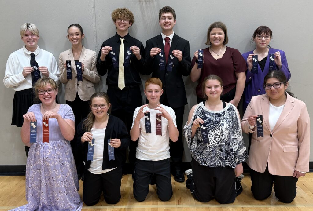 The Milbank oral interp team, coached by MHS teacher Anna Hamm, started their 2025-2026 season on the road. The team traveled to Summit for their first meet on Saturday, October 4. Colton Roark led the Bulldogs by earning a Superior Plus rating in the Storytelling division.