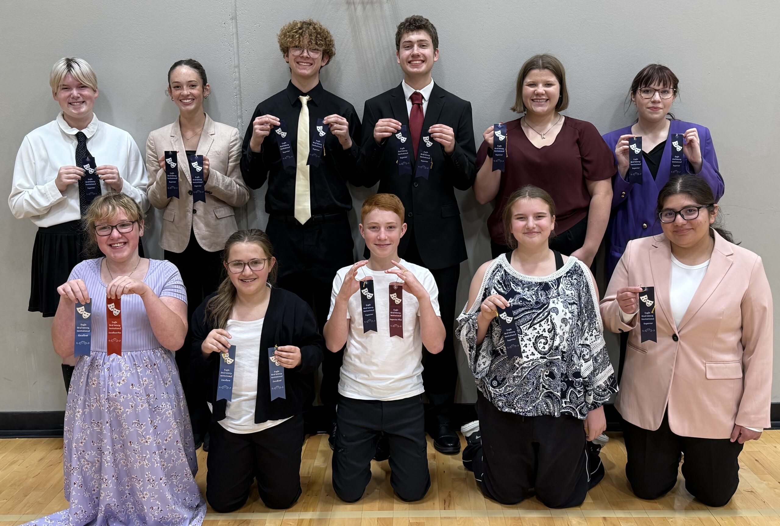 The Milbank oral interp team, coached by MHS teacher Anna Hamm, started their 2025-2026 season on the road. The team traveled to Summit for their first meet on Saturday, October 4. Colton Roark led the Bulldogs by earning a Superior Plus rating in the Storytelling division.
