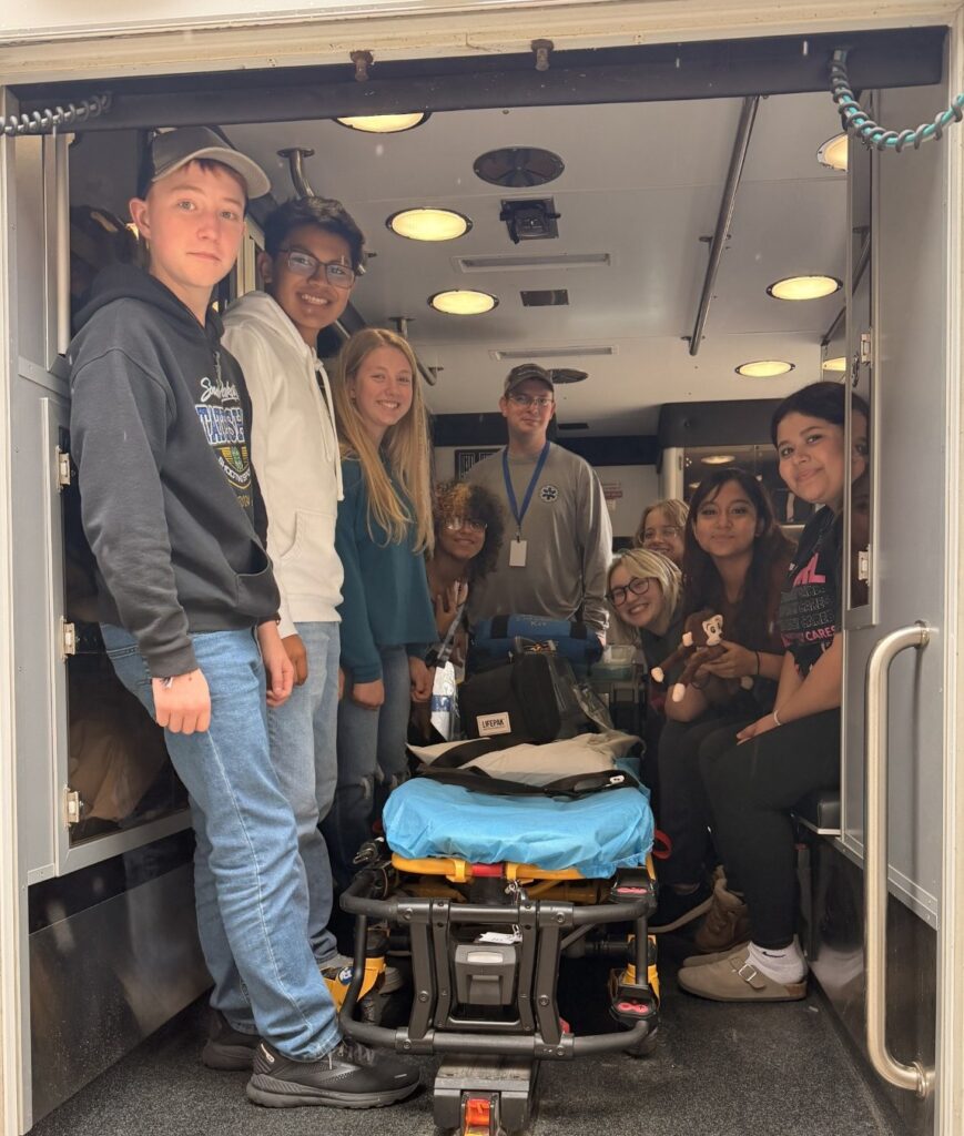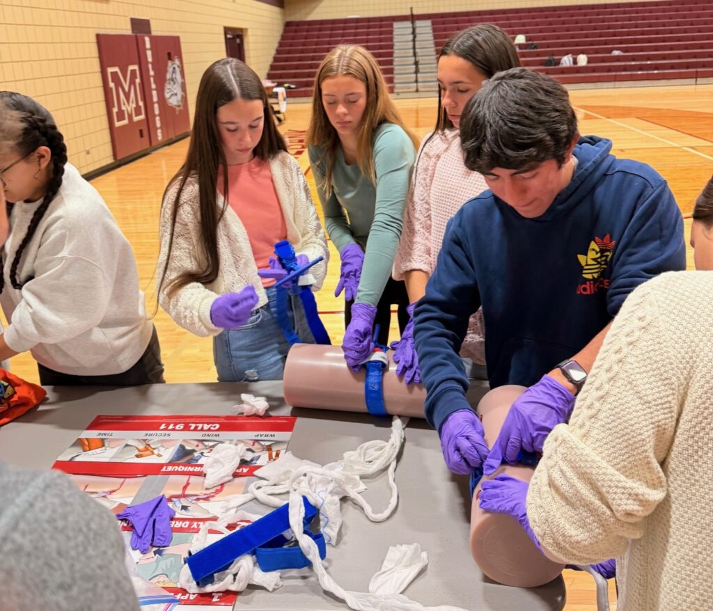 Over 65 MHS students learned lifesaving skills such as Stop The Bleed, Hands Only CPR, how to use an EpiPen auto-injector through an escape room experience during a medic camp in the Milbank Armory on October 14. The students also toured an ambulance and learned about the possibilities of becoming an EMT.