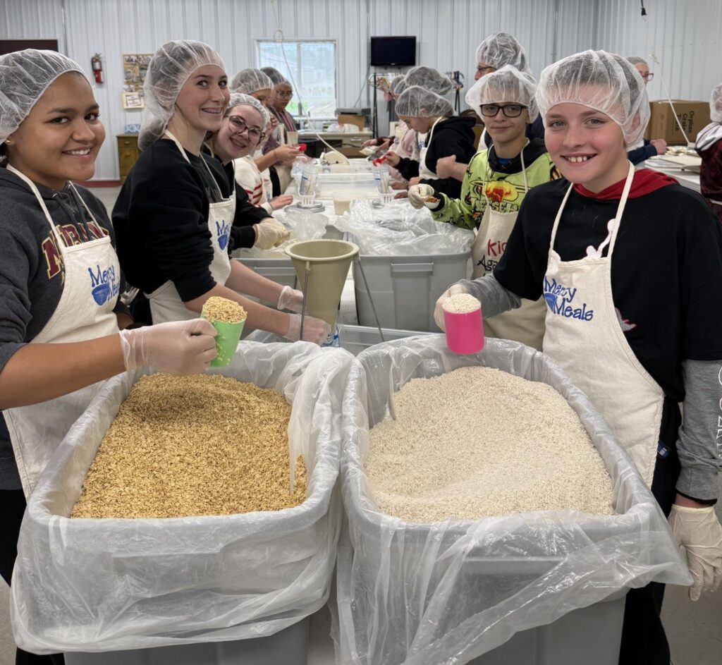 Student council members from Milbank Middle School helped pack over 3,000 Mercy Meals at the Orphan Grain Train collection center on Wednesday, October 15.