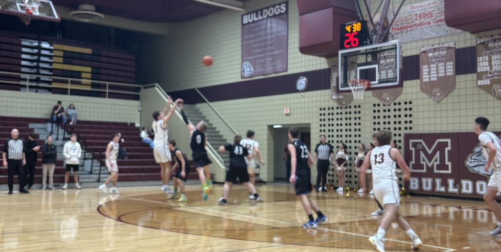 The Bulldogs tipped off with Florence-Henry at the MIlbank Armory on Friday, January 23. Stay Frosty was hardly a challenge with temperatures hovering around 12 below zero outside. Inside, Jeter Scoular, Sam Rick, Jack Howard, Lincoln Holscher and Emmett Snaza got things started as everyone thawed out. The Bulldogs fouled Dawson Hlavacek and sent him to the line to shoot two, but Hlavacek missed them both. Milbank got the rebound and took it the other way. The Bulldogs sent it around the horn until Sam Rick ventured a three and got the score to 3-0 in favor of the Dawgs. The clock was already at 5:44.