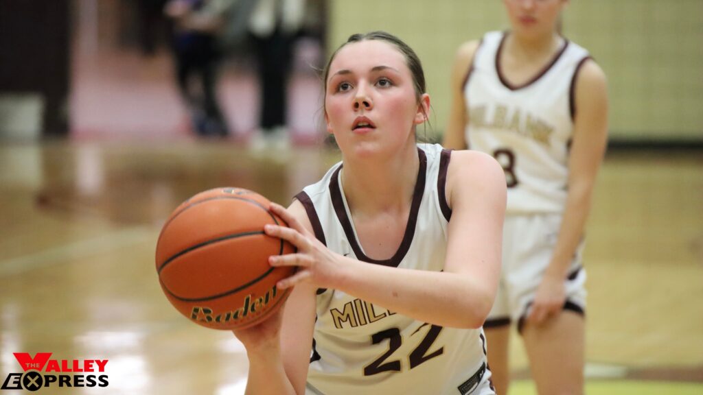 The Lady Bulldogs’ defense held Florence-Henry to an average of less than eight points per quarter and gave them only eight chances at the free throw line. Adding to the scoring, senior Anna Neugebauer also produced a double-double for Milbank.. She made 12 points and 11 rebounds. Neugebauer added an assist and a steal. Freshman Violet Johnson made 12 points, two assists, and two rebounds. Eighth-grader Susie Schuneman made a free throw and contributed four assists and two rebounds. Sophomore Bree Townsend made three assists, four rebounds, and a steal. Bailee Hendricks, a freshman, made two assists, one rebound, and two steals. Sophomore Lydia Gall grabbed two rebounds.