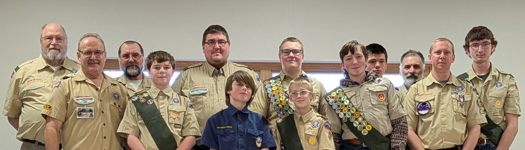 Troop 45 Back row left to right: Lyn Hardy, Wade Falk, Ben Shelstad, Bocephus Shelstad, Nathan Drake, Jeff Loutsch, Peyton Bauer