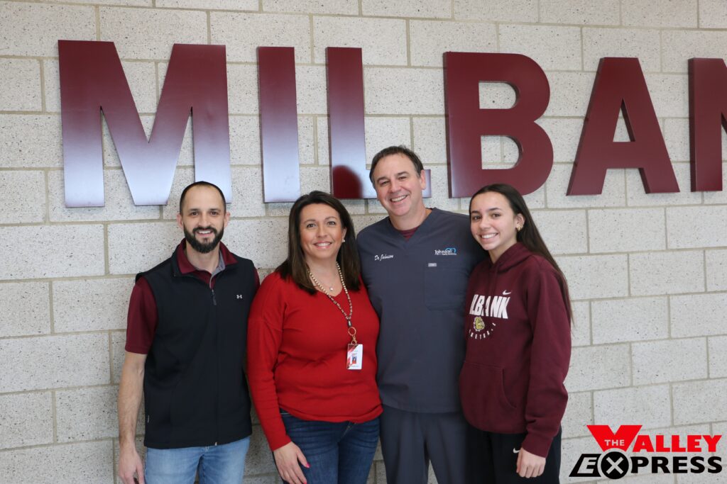 Top Photo: Principal Dave Graf, Sara Johnson, Dr. Bryan Johnson and Violet Johnson.