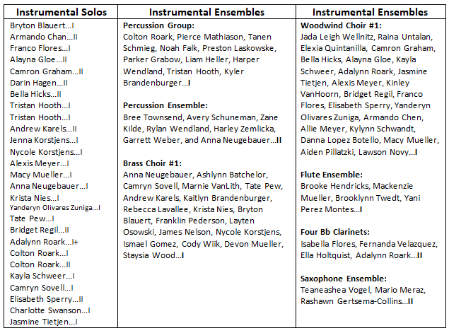 Instrumentalists from Milbank received One Superior Plus, 26 Superiors, and One Excellent.
